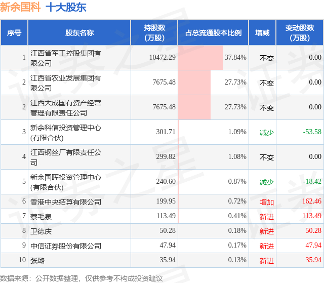 根据新余国科2025年三季报公布的十大股东详情如下: