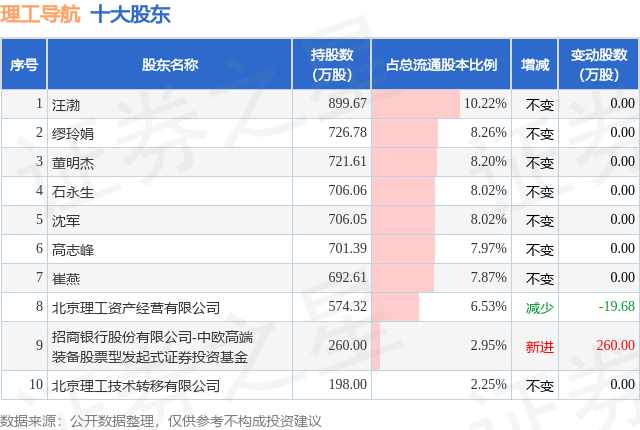 根据理工导航2025年三季报公布的十大股东详情如下: