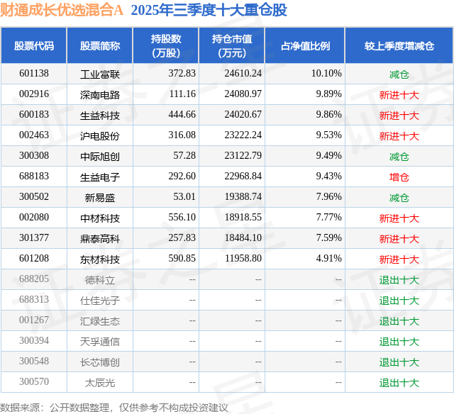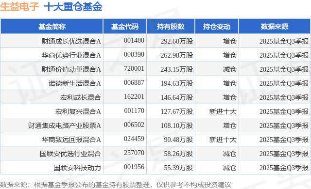 根据2025基金Q3季报公募基金重仓股数据,重仓该股的公募基金共50家,其中持有数量最多的公募基金为财通基金的财通成长优选混合A。财通成长优选混合A目前规模为16.38亿元,最新净值3.47(11月25日),较上一交易日上涨4.64%,近一年上涨85.86%。该公募基金现任基金经理为金梓才。金梓才在任的基金产品包括:财通价值动量混合A,管理时间为2014年11月19日至今,期间收益率为588.06%;财通多策略福鑫定开混合,管理时间为2018年5月21日至今,期间收益率为290.57%;财通集成电路产业股票A,管理时间为2018年11月29日至今,期间收益率为229.62%。