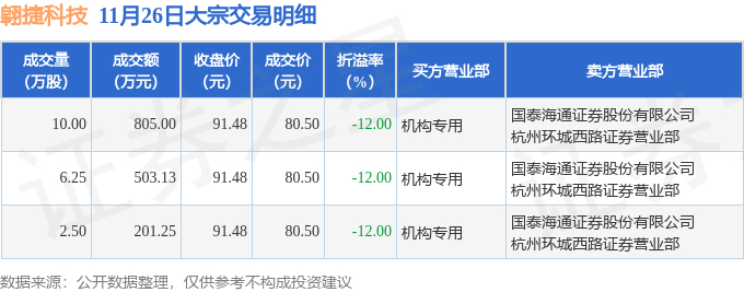 证券之星消息,11月26日翱捷科技发生大宗交易,交易数据如下: