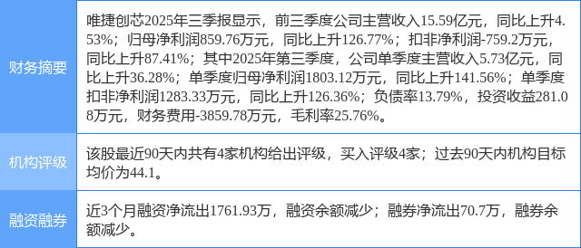 2025年9月19日,中邮证券研究员吴文吉发布了对唯捷创芯的研报《拐点已至》,该研报对唯捷创芯给出“买入”评级。研报中预计公司2025/2026/2027年营业收入分别为23.2/29.4/35.3亿元,归母净利润分别为0.4/1.4/4.1亿元,维持“买入”评级。证券之星数据中心根据近三年发布的研报数据计算,该研报作者对此股的盈利预测准确度为35.18%。