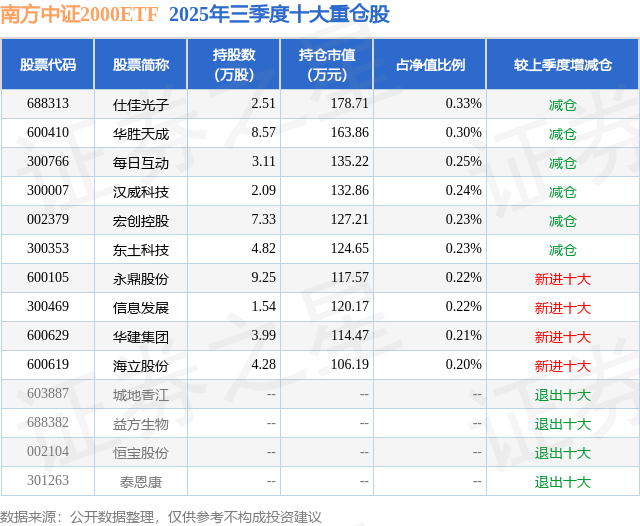 南方中证2000ETF的前十大重仓股如下: