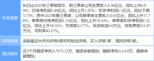 2025年10月31日,开源证券研究员初敏,叶彬慧发布了对长白山的研报《公司信息更新报告:2025Q3暑期客流复苏强劲,Q4交通改善蓄力新一轮冰雪季》,该研报对长白山给出“买入”评级。研报中预计2025-2027年归母净利润1.77/2.14/2.53亿元(前值为1.98/2.35/2.78亿元),yoy+22.4%/+21.0%/+18.6%,对应EPS0.66/0.80/0.95元,当前股价对应PE为78.3/64.7/54.6倍,Q4高铁红利释放仍有望驱动新冰雪季客流景气,维持“买入”评级。证券之星数据中心根据近三年发布的研报数据计算,该研报作者对此股的盈利预测准确度为68.94%。