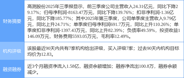 2025年10月31日,东吴证券研究员周尔双,李文意发布了对高测股份的研报《2025年三季报点评:Q3业绩扭亏为盈,主业业绩修复&机器人业务打开第二成长曲线》,该研报对高测股份给出“买入”评级。证券之星数据中心根据近三年发布的研报数据计算,该研报作者对此股的盈利预测准确度为43.67%。