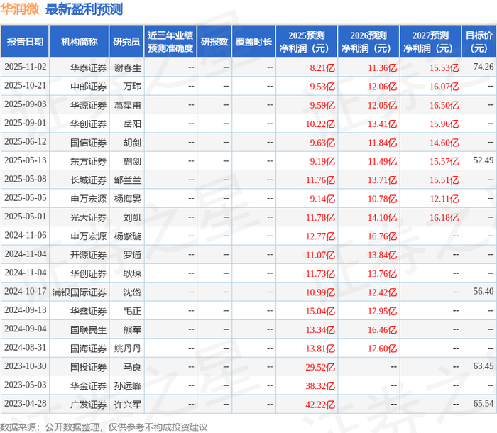 以下是详细的盈利预测信息: