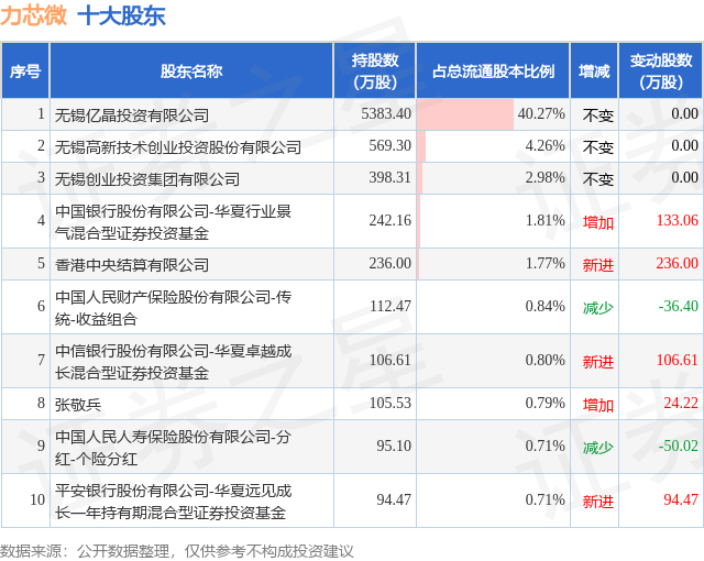 根据力芯微2025年三季报公布的十大股东详情如下: