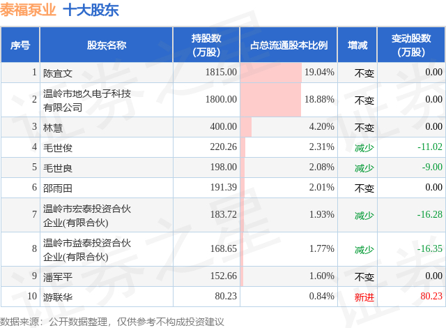 根据泰福泵业2025年三季报公布的十大股东详情如下: