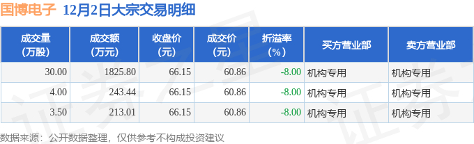 证券之星消息,12月2日国博电子发生大宗交易,交易数据如下: