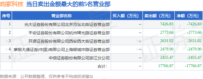 证券之星消息,沪深交易所2025年12月2日公布的交易公开信息显示,昀冢科技(688260)因有价格涨跌幅限制的日收盘价格跌幅达到15%的前五只证券登上龙虎榜。此次是近5个交易日内第4次上榜。