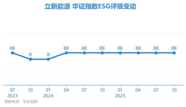 日前,华证指数公布了新一期(2025年10月31日)的ESG评级结果,立新能源(001258.SZ)获得BB评级(华证指数评级为C起至AAA九档,C为最低档,AAA为其最高一级评级/AA为其第二档),上一期(2025年7月31日)ESG评级为BB。本期ESG评级在58家电力公用事业行业A股上市公司中排名第19(上一期排名第20)。
