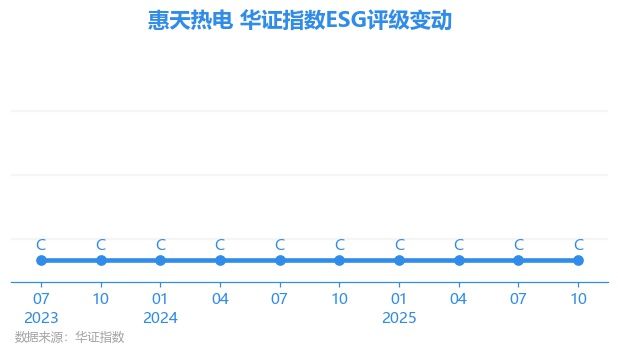 日前,华证指数公布了新一期(2025年10月31日)的ESG评级结果,惠天热电(000692.SZ)获得C评级(华证指数评级为C起至AAA九档,C为最低档,AAA为其最高一级评级/AA为其第二档),上一期(2025年7月31日)ESG评级为C。本期ESG评级在12家复合型公用事业行业A股上市公司中排名第11(上一期排名第12)。