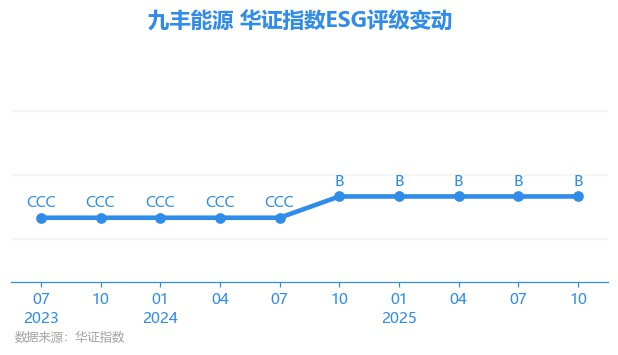 日前,华证指数公布了新一期(2025年10月31日)的ESG评级结果,九丰能源(605090.SH)获得B评级(华证指数评级为C起至AAA九档,C为最低档,AAA为其最高一级评级/AA为其第二档),上一期(2025年7月31日)ESG评级为B。本期ESG评级在22家燃气公用事业行业A股上市公司中排名第6(上一期排名第5)。