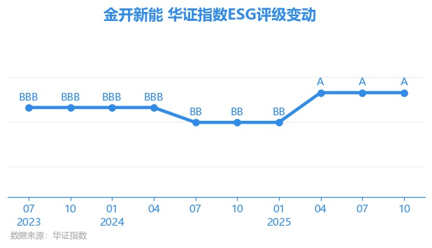 日前,华证指数公布了新一期(2025年10月31日)的ESG评级结果,金开新能(600821.SH)获得A评级(华证指数评级为C起至AAA九档,C为最低档,AAA为其最高一级评级/AA为其第二档),上一期(2025年7月31日)ESG评级为A。本期ESG评级在20家独立电力生产商与能源贸易商行业A股上市公司中排名第2(上一期排名第2)。