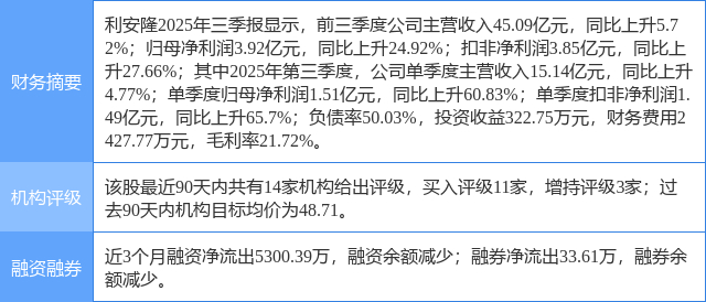 今日利安隆(300596)涨10.03%,收盘报43.11元。