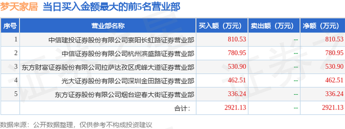 证券之星消息,沪深交易所2025年12月3日公布的交易公开信息显示,梦天家居(603216)因有价格涨跌幅限制的日收盘价格跌幅偏离值达到7%的前五只证券登上龙虎榜。此次是近5个交易日内第3次上榜。