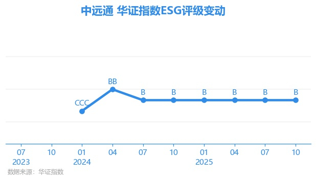 日前,华证指数公布了新一期(2025年10月31日)的ESG评级结果,中远通(301516.SZ)获得B评级(华证指数评级为C起至AAA九档,C为最低档,AAA为其最高一级评级/AA为其第二档),上一期(2025年7月31日)ESG评级为B。本期ESG评级在531家电子设备、仪器和元件行业A股上市公司中排名第391(上一期排名第362)。