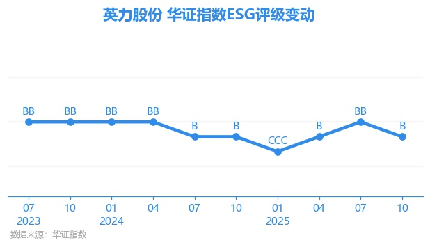日前,华证指数公布了新一期(2025年10月31日)的ESG评级结果,英力股份(300956.SZ)获得B评级(华证指数评级为C起至AAA九档,C为最低档,AAA为其最高一级评级/AA为其第二档),上一期(2025年7月31日)ESG评级为BB。本期ESG评级在531家电子设备、仪器和元件行业A股上市公司中排名第314(上一期排名第275)。