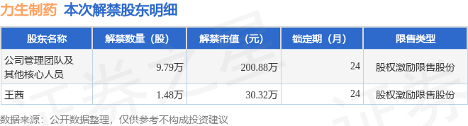 证券之星消息,根据市场公开信息整理,力生制药(002393)于12月5日将有11.27万股限售股份解禁,为公司股权激励限售股份,占公司总股本0.04%。(本次数据根据历史公告整理得出,实际情况以上市公司最新公告为准)最近一年内,该股累计解禁68.45万股,占总股本的0.27%。本次解禁后,公司还有717.95万股限售股份,占总股本2.79%。具体如下图所示: