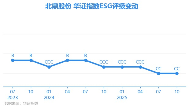 日前,华证指数公布了新一期(2025年10月31日)的ESG评级结果,北鼎股份(300824.SZ)获得CC评级(华证指数评级为C起至AAA九档,C为最低档,AAA为其最高一级评级/AA为其第二档),上一期(2025年7月31日)ESG评级为CC。本期ESG评级在148家家庭耐用消费品行业A股上市公司中排名第110(上一期排名第102)。