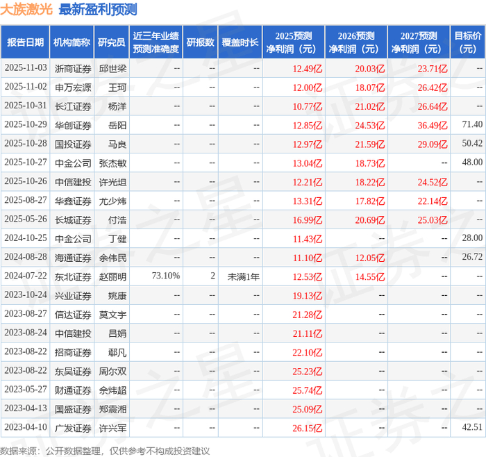 大族激光2025年三季报显示,前三季度公司主营收入127.13亿元,同比上升25.51%;归母净利润8.63亿元,同比下降39.46%;扣非净利润5.68亿元,同比上升51.46%;其中2025年第三季度,公司单季度主营收入51.0亿元,同比上升35.14%;单季度归母净利润3.75亿元,同比上升86.51%;单季度扣非净利润3.07亿元,同比上升98.47%;负债率50.71%,投资收益-4303.07万元,财务费用-807.4万元,毛利率32.57%。