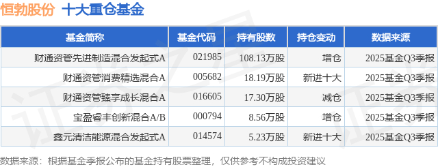 重仓恒勃股份的公募基金请见下表: