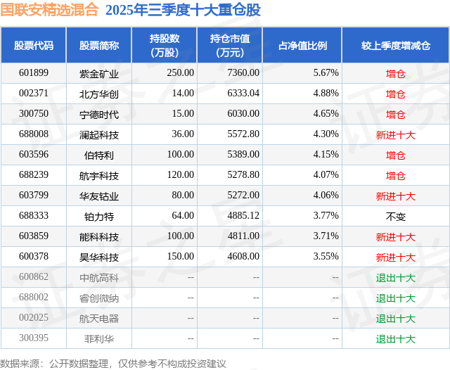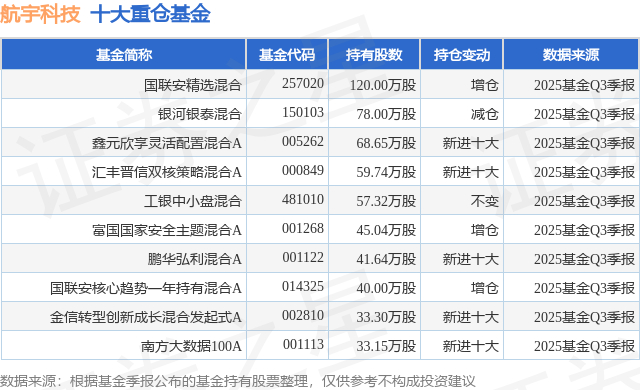 重仓航宇科技的前十大公募基金请见下表: