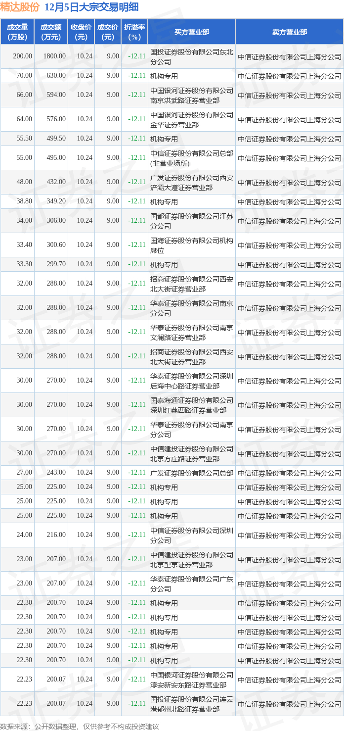 证券之星消息,12月5日精达股份发生大宗交易,交易数据如下: