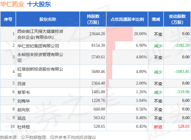 根据华仁药业2025年三季报公布的十大股东详情如下:
