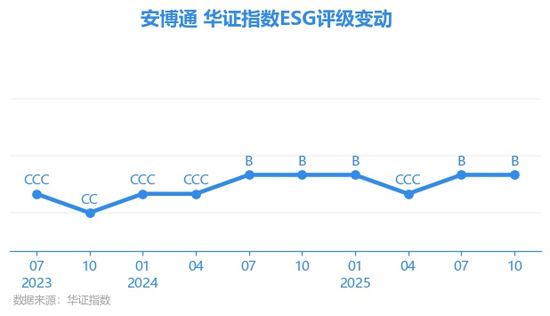 日前,华证指数公布了新一期(2025年10月31日)的ESG评级结果,安博通(688168.SH)获得B评级(华证指数评级为C起至AAA九档,C为最低档,AAA为其最高一级评级/AA为其第二档),上一期(2025年7月31日)ESG评级为B。本期ESG评级在165家软件行业A股上市公司中排名第116(上一期排名第118)。