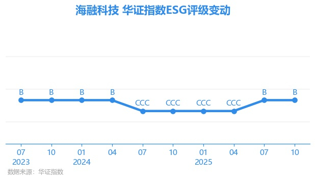 日前,华证指数公布了新一期(2025年10月31日)的ESG评级结果,海融科技(300915.SZ)获得B评级(华证指数评级为C起至AAA九档,C为最低档,AAA为其最高一级评级/AA为其第二档),上一期(2025年7月31日)ESG评级为B。本期ESG评级在168家食品行业A股上市公司中排名第53(上一期排名第47)。