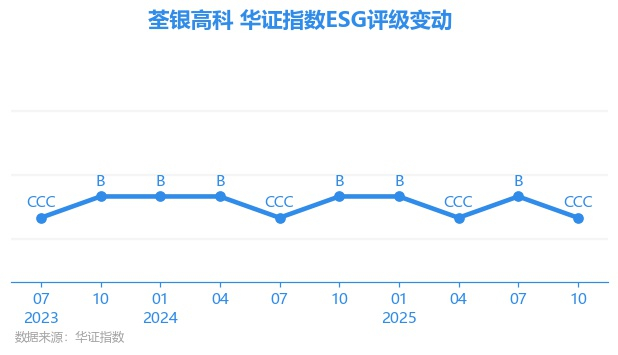 日前,华证指数公布了新一期(2025年10月31日)的ESG评级结果,荃银高科(300087.SZ)获得CCC评级(华证指数评级为C起至AAA九档,C为最低档,AAA为其最高一级评级/AA为其第二档),上一期(2025年7月31日)ESG评级为B。本期ESG评级在168家食品行业A股上市公司中排名第59(上一期排名第53)。