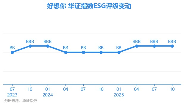 日前,华证指数公布了新一期(2025年10月31日)的ESG评级结果,好想你(002582.SZ)获得BBB评级(华证指数评级为C起至AAA九档,C为最低档,AAA为其最高一级评级/AA为其第二档),上一期(2025年7月31日)ESG评级为BBB。本期ESG评级在168家食品行业A股上市公司中排名第24(上一期排名第23)。