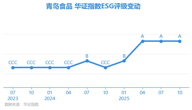 日前,华证指数公布了新一期(2025年10月31日)的ESG评级结果,青岛食品(001219.SZ)获得A评级(华证指数评级为C起至AAA九档,C为最低档,AAA为其最高一级评级/AA为其第二档),上一期(2025年7月31日)ESG评级为A。本期ESG评级在168家食品行业A股上市公司中排名第12(上一期排名第12)。