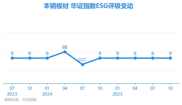 日前,华证指数公布了新一期(2025年10月31日)的ESG评级结果,本钢板材(000761.SZ)获得B评级(华证指数评级为C起至AAA九档,C为最低档,AAA为其最高一级评级/AA为其第二档),上一期(2025年7月31日)ESG评级为B。本期ESG评级在206家金属与采矿行业A股上市公司中排名第118(上一期排名第107)。
