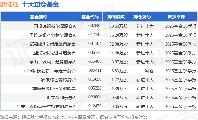 重仓欧陆通的前十大公募基金请见下表: