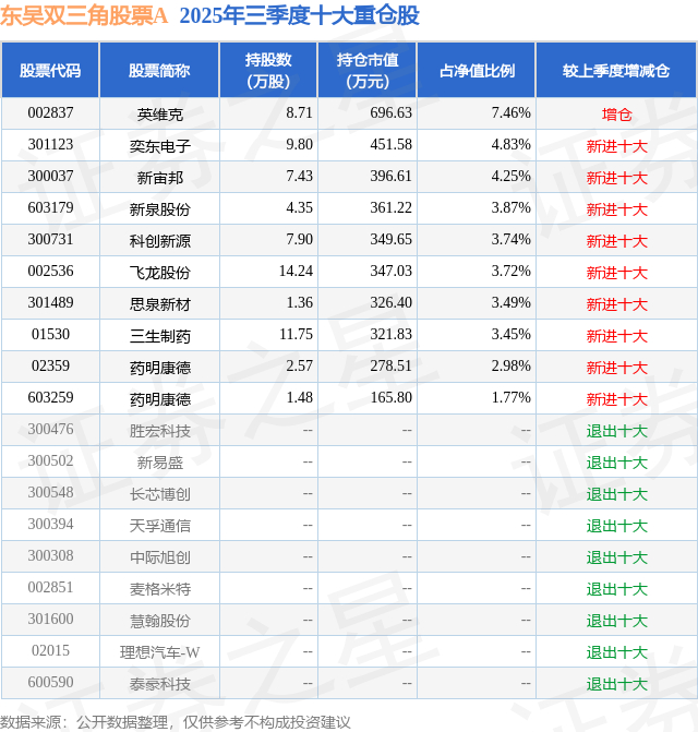 根据2025基金Q3季报公募基金重仓股数据,重仓该股的公募基金共1家,其中持有数量最多的公募基金为东吴基金的东吴双三角股票A。东吴双三角股票A目前规模为0.23亿元,最新净值0.6175(12月5日),较上一交易日上涨0.02%,近一年下跌13.45%。该公募基金现任基金经理为陈伟斌。