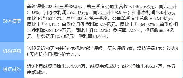 2025年10月30日,东吴证券研究员曾朵红,阮巧燕,胡锦芸发布了对赣锋锂业的研报《2025年三季报点评:锂盐价格弹性可观,锂电池贡献利润增量》,该研报对赣锋锂业给出“买入”评级。研报中预计2025-2027年归母净利润4.3/20/32亿元(原预期4.3/15.5/23.5亿元),同比+121%/+365%/+59%,对应PE为307x/66x/42x,公司全球布局众多优质资源,矿端自供率持续提升,维持“买入”评级。证券之星数据中心根据近三年发布的研报数据计算,该研报作者对此股的盈利预测准确度为38.14%。