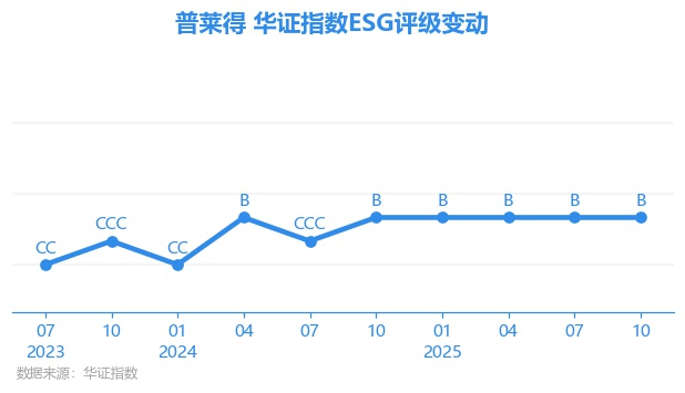 从细项得分来看,普莱得E项得分60.97,评级为CC,行业内排名174/492(E项目评分维度包括气候变化、资源利用、环境污染、环境友好、环境管理);S项得分82.78,评级为BBB,行业内排名137/492(S项目评分维度包括人力资本、产品责任、供应商、社会贡献);G项得分80.35,评级为BBB,行业内排名235/492(G项目评分维度包括股东权益、治理结构、信披质量、治理风险、外部处分、商业道德)。