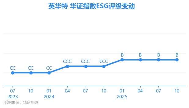 日前,华证指数公布了新一期(2025年10月31日)的ESG评级结果,英华特(301272.SZ)获得B评级(华证指数评级为C起至AAA九档,C为最低档,AAA为其最高一级评级/AA为其第二档),上一期(2025年7月31日)ESG评级为B。本期ESG评级在330家电气设备行业A股上市公司中排名第209(上一期排名第206)。