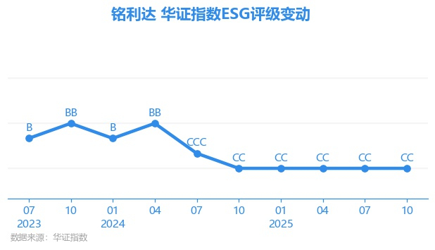 日前,华证指数公布了新一期(2025年10月31日)的ESG评级结果,铭利达(301268.SZ)获得CC评级(华证指数评级为C起至AAA九档,C为最低档,AAA为其最高一级评级/AA为其第二档),上一期(2025年7月31日)ESG评级为CC。本期ESG评级在492家机械制造行业A股上市公司中排名第436(上一期排名第395)。