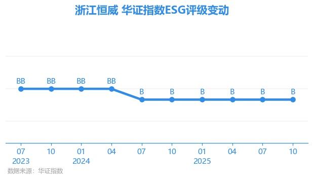 日前,华证指数公布了新一期(2025年10月31日)的ESG评级结果,浙江恒威(301222.SZ)获得B评级(华证指数评级为C起至AAA九档,C为最低档,AAA为其最高一级评级/AA为其第二档),上一期(2025年7月31日)ESG评级为B。本期ESG评级在330家电气设备行业A股上市公司中排名第248(上一期排名第242)。