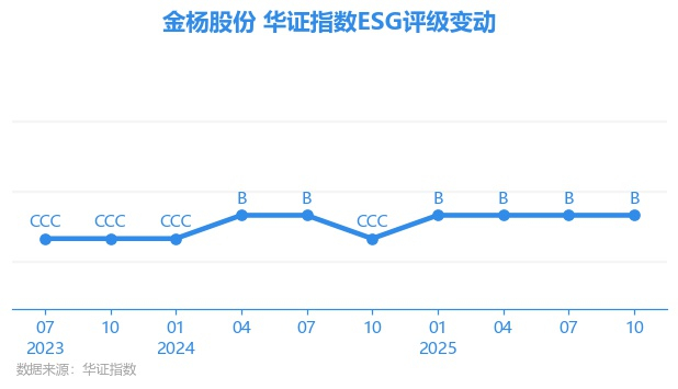 日前,华证指数公布了新一期(2025年10月31日)的ESG评级结果,金杨精密(301210.SZ)获得B评级(华证指数评级为C起至AAA九档,C为最低档,AAA为其最高一级评级/AA为其第二档),上一期(2025年7月31日)ESG评级为B。本期ESG评级在330家电气设备行业A股上市公司中排名第247(上一期排名第221)。