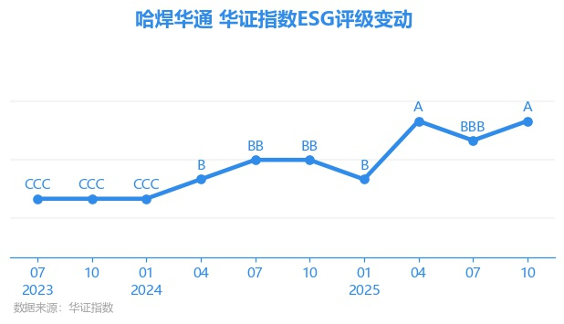 日前,华证指数公布了新一期(2025年10月31日)的ESG评级结果,哈焊华通(301137.SZ)获得A评级(华证指数评级为C起至AAA九档,C为最低档,AAA为其最高一级评级/AA为其第二档),上一期(2025年7月31日)ESG评级为BBB。本期ESG评级在492家机械制造行业A股上市公司中排名第70(上一期排名第71)。