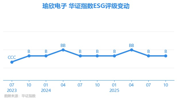 日前,华证指数公布了新一期(2025年10月31日)的ESG评级结果,瑜欣电子(301107.SZ)获得B评级(华证指数评级为C起至AAA九档,C为最低档,AAA为其最高一级评级/AA为其第二档),上一期(2025年7月31日)ESG评级为B。本期ESG评级在330家电气设备行业A股上市公司中排名第153(上一期排名第138)。