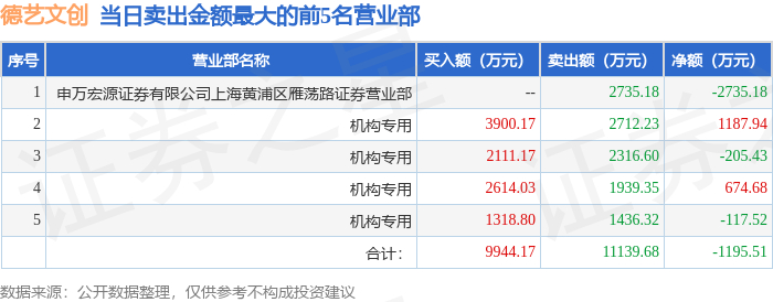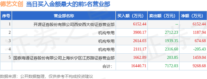 证券之星消息,沪深交易所2025年12月9日公布的交易公开信息显示,德艺文创(300640)因日换手率达到30%的前5只证券登上龙虎榜。此次是近5个交易日内第1次上榜。