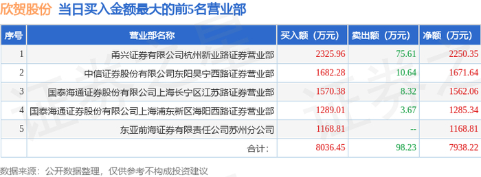 证券之星消息,沪深交易所2025年12月9日公布的交易公开信息显示,欣贺股份(003016)因日振幅值达到15%的前5只证券登上龙虎榜。此次是近5个交易日内第2次上榜。