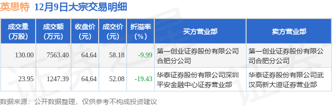 证券之星消息,12月9日英思特发生大宗交易,交易数据如下: