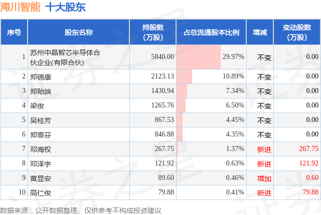 根据海川智能2025年三季报公布的十大股东详情如下: