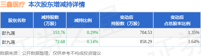 证券之星消息,12月9日三鑫医疗发布公告《三鑫医疗:关于股东减持股份期限届满暨实施情况的公告》,其股东彭九莲于2025年10月10日至2025年11月26日间合计减持226.44万股,占公司目前总股本的0.4336%,变动期间该股股价上涨2.66%,截止11月26日收盘报9.27元。