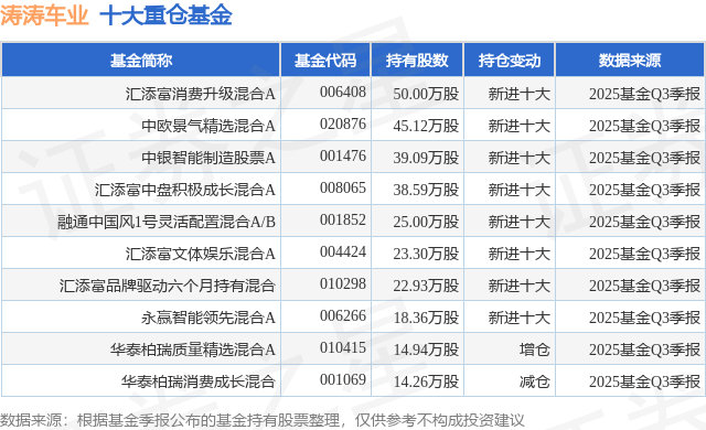 重仓涛涛车业的前十大公募基金请见下表: